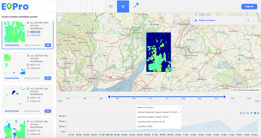EOPro aims to provide a web based user-friendly platform for both new and advanced users of Earth Observation (EO) data, especially those already familiar with geospatial software. Powered by the EODH, its primary goal is to allow users to run predefined scenarios and obtain meaningful outputs without needing to understand the specifics of source data types. Predefined scenarios available at this stage are Land Cover Changes and Water Quality Analysis scenarios. EOPro also enables users to adjust inputs and learn how these changes affect results, serving as both a learning tool and a frontend for streamlined EO processing. Additionally, EOPro caters to intermediate users by offering a quick, code-free method for defining workflow inputs for specific tasks. The core feature of EOPro is the Action Creator, a powerful tool that helps users create customized workflows for processing EO data and providing clear visual and numeric results through built in visualization and analysis tools