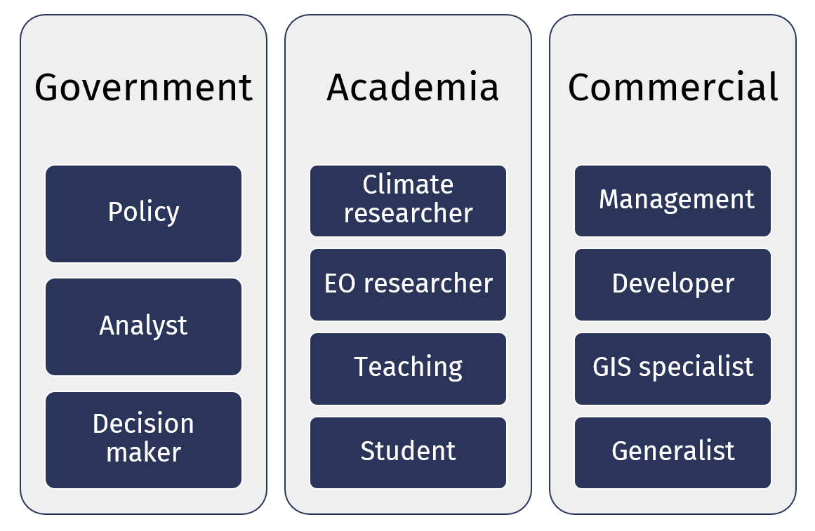 The Hub is suitable for a range of user types and roles across the government, academic and commercial disciplines. Data access can support operational government needs, as well as provide EO insights to inform policy, supporting the ability to build custom dashboard applications powered by the Hub. The Hub provides quality-assured data access for academic researchers and students, acting as a central teaching resource suitable for beginners in UK EO data processing, as well as technically advanced users. There are opportunities for commercial users to supply EO datasets to enhance the Resource Catalogue, or utilise existing imagery as part of operations and reporting.