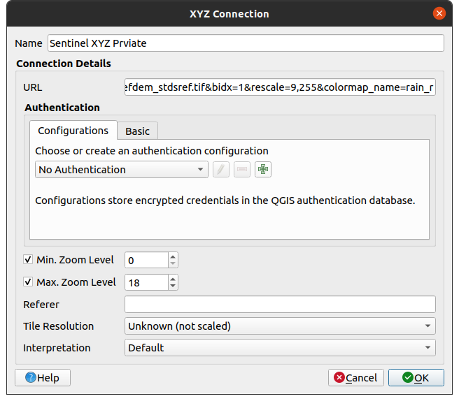 Next enter the dataset's XYZ URL into the URL section. Which should look something like this: