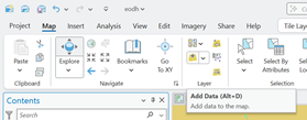 Within your ArcGIS Pro map project, navigate to the Layer group in the Map tab, and find Add Data.