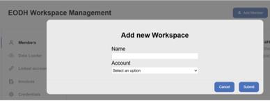 Users can create workspaces using the Workspace UI and then grant access to other EODH users by adding members to the workspace.